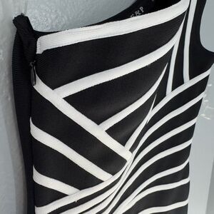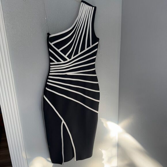 F & P Paris One Shoulder Dress Bodycon Black White Women's Medium