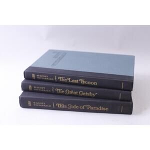 Discover the timeless works of F. Scott Fitzgerald with this 1969 edition collection featuring "The Last Tycoon", "The Great Gatsby", and "This Side of Paradise". Published by Scribner's, these classics offer a glimpse into the Jazz Age and the complexity of the American Dream. Whether you're a seasoned reader or new to Fitzgerald’s world, this collection is a must-have for literary enthusiasts and collectors alike. A beautifully bound set that brings elegance and insight to any bookshelf.