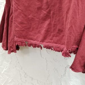 F and F Cotton Wine Midriff Bell Sleeve w/fringe. Gently worn - fringe is a little fringy.