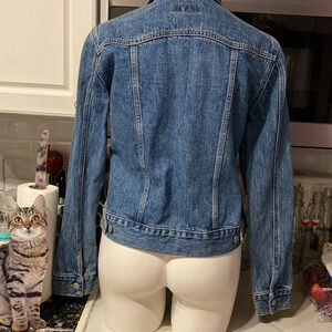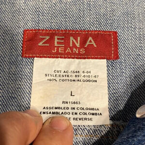 F womens Zena solid blue denim long sleeve button front denim jacket L. EUC