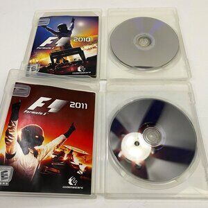 F1 2010 and F1 2011 Formula 1 Car Racing PlayStation 3 PS3 Video Game Lot of 2 Video Games. Complete in case with artwork, manual and disc. Cases show quite a bit a blemishes/scratches, discs will show some minor blemishes and signs of previous use.