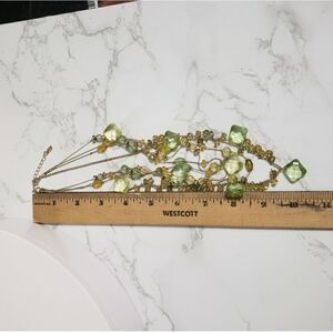 Beads are light green and golden.