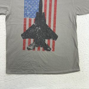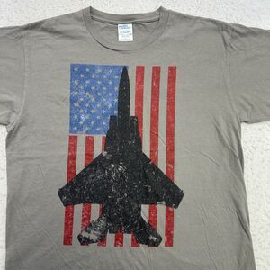 F-15 Fighter Jet Shirt Mens Large L Gray American Flag Short Sleeve Cotton