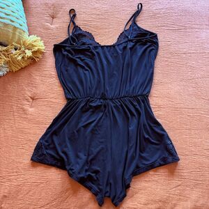 F21 Black Lace Trim & Jersey Pajama Lounge Romper size XS/S