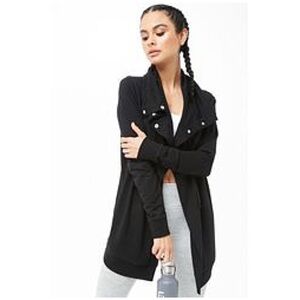 F21 Black Wide Collar Soft Active Knit Workout Jacket