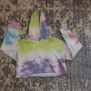 F21 Bling Tie Dye Cropped Hoddie Sweater NWT