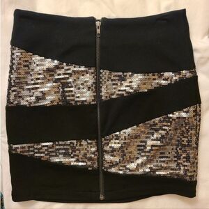 Fitted F21 sequin skirt from the late 2000's. Excellent condition. Sequins are attached well. Thick stretch fabric with a thin lining. Exposed zipper in back. Worn once.