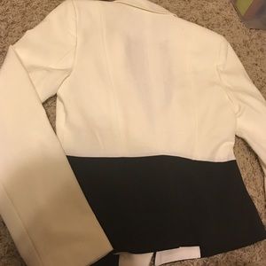 Brand new w/ tags. Color-blocked blazer in white & black with one button front closure. Lightly lined inside.