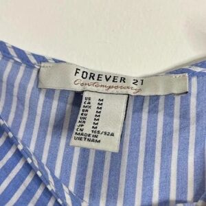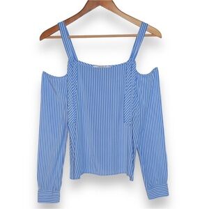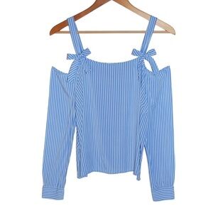 F21 Contemporary | Blue and White Striped Off-Shoulder Blouse w Ties Size Medium