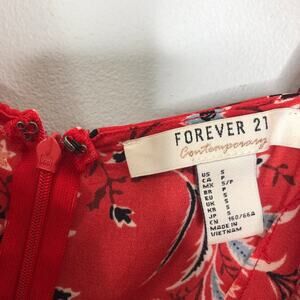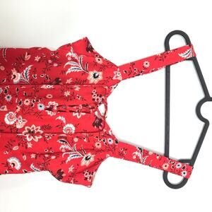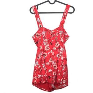 F21 Contemporary Red Floral Lace Up Tank Romper S