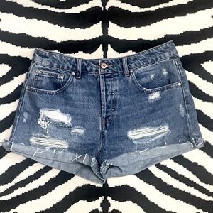F21 High Waisted Distressed Denim Cutoff Shorts