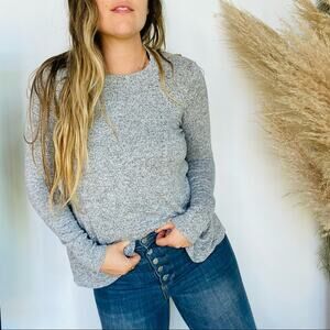F21 FOREVER 21 Light Gray Grey White Woven Long Sleeve Sweater Knit Top Shirt M