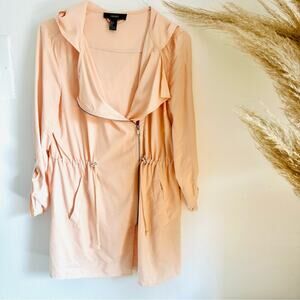 F21 FOREVER 21 Peach Pink Offset Zipper Light Hooded Anorak Trench Coat Jacket L