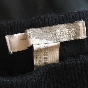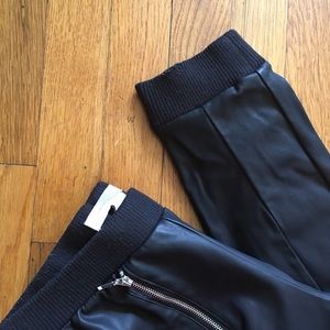 In great condition. From Forever 21's Contemporary line. True black color. Size XS and fit true to size. Features thick ribbed stretchy knit waistband, two faux zip "pockets" on the front with silver hardwares and seams running down the front legs. 100% polyurethane. 100% polyester lining. High rise. Inseam measures approx. 27 inches. These would be perfect for night outs with heels or casual lazy days with sneakers!👌NOTE: You can machine wash these inside out and air dry after!😊