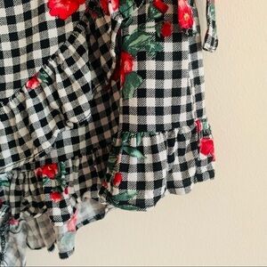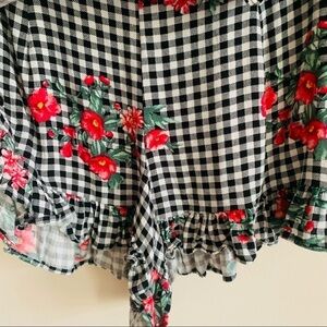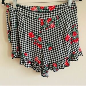 F21 Faux Wrap Skort Black & White Gingham w/Roses