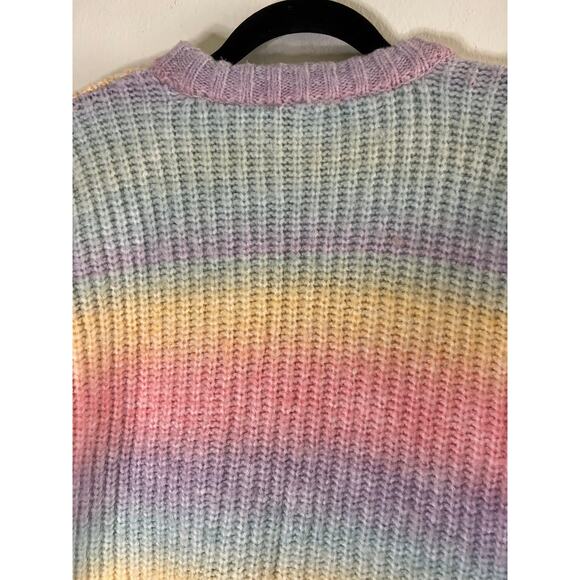 F21 Forever 21 x Hello Kitty Appliqué Pastel Rainbow Knit Crewneck Sweater