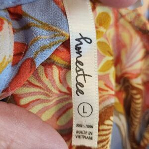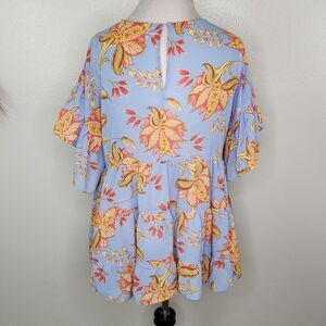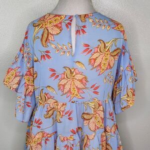 F21 Honstee Blue Floral Tiered Ruffle Flutter Sleeve Babydoll Blouse Size Large