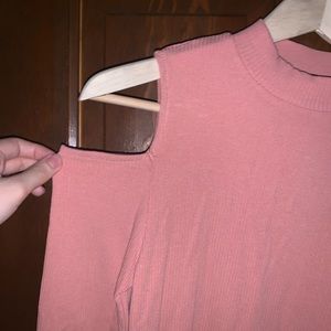 Forever 21 Mauve Pink Mock Neck Ribbed Open-Shoulder Top size large new with tags!