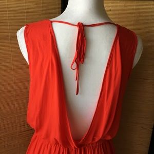 This Vibrant Red Sleeveless Dress by Forever 21 features a pretty front crochet pattern and an open back tie design. subtle yet sexy ;) elastic shirring at waist. Skirt with lining. In excellent condition without any signs of wear