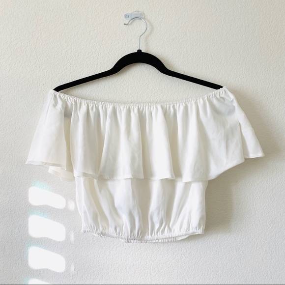 White ruffle off the shoulder crop top • size S (removed tag bc my skin is sensitive) • elastic • excellent condition