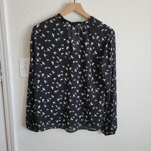 F21 Sheer Bird Print Blouse Size Large