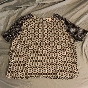 Blousy short sleeved shirt from Forever 21. Worn a few times. No imperfections/flaws, although the sleeves are a little weird (see picture). Buttoned back. Slits on the sides. Fit is smaller, I'd say this top will fit medium or small best. Measurements upon request!