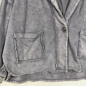 F21 Slouchy Distressed Oversized Reverse Seam One-Button Jacket Cardigan Size Small Chore Pocket