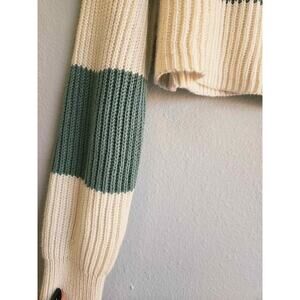 F21 Striped Cropped Knit Sweater Ribbed Chunky Cotton Blend Green & Cream Small