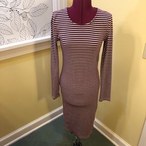 White and burgundy long sleeve ribbed bodycon dress. Pre-used. Great dress all year round!