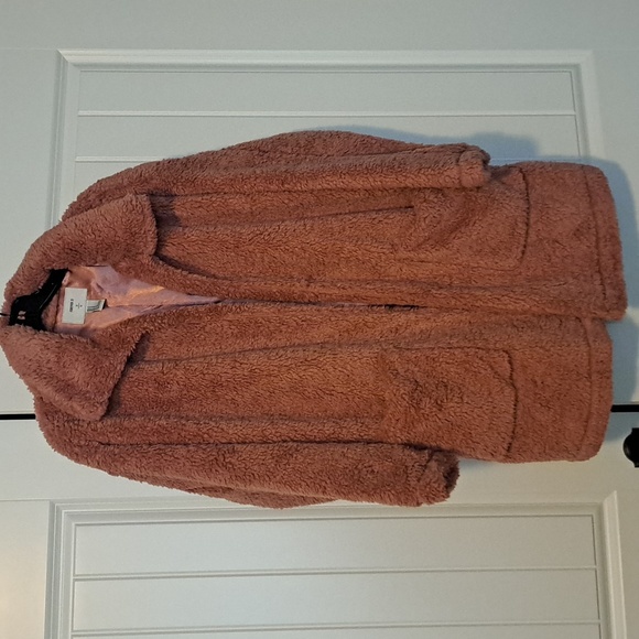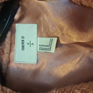F21 Teddy Style Jacket with pockets. Jacket is lined with a satin type material. Only worn once. Great condition. color is a mauve pink tone. Very soft. Fits like a large in F21.