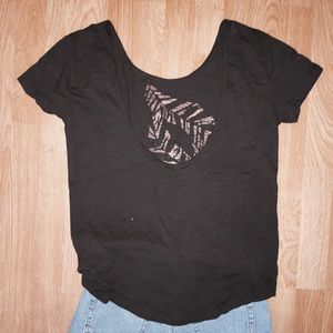 F21 tee with metallic graphic design, the back is a low scoop opening