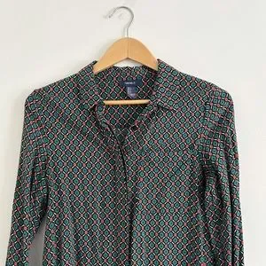 This top has such a cute and colorful print. It’s button down and the material is really soft and silky. It’s actually well made and feels high quality considering it’s from forever 21. Barely worn!