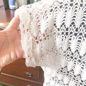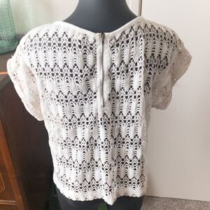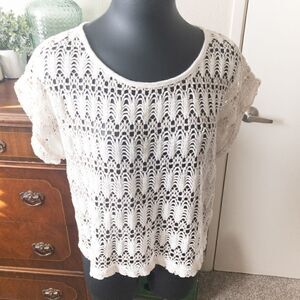 Suprr cute lace crop top that hits right about the belly button. Lightweight and see through. Could be a swim cover up! 🏊♂️
