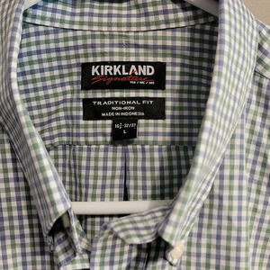 F26KIRKLAND SIGNATURE: MEN GREEN WHITE PURPLE BUTTON DOWN LONG SLEEVE SIZE LARGE