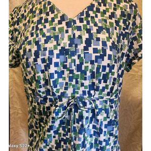 ▪︎DESCRIPTION: Short sleeved blue green pattern bow at waist v neck