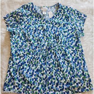 F27 Studio Works blue and green pattern t-shirt with peplum
