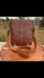 Made entirely of a very soft and smooth burnished tobacco brown glovetanned leather with cream colored contrast stitching, nickel silver hardware, an exterior slip pocket on the back, a zip-top closure, and a khaki fabric lined interior.