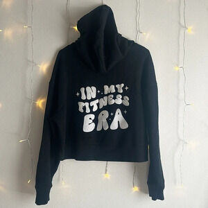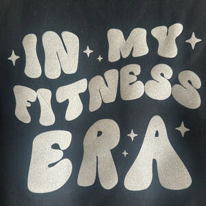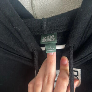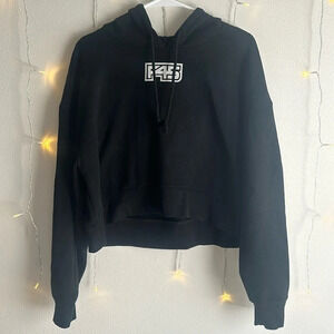Worn/washed a handful of times. Sweatshirt is black with glittery white lettering. It is a slightly cropped fit.