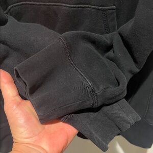 Sleek black hoodie with bold white logo. Comfortable and stylish for everyday wear.