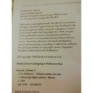 F/A-18 Hornet Osprey Combat Aircraft Series by Lindsay Peacock 1986 #2 PB
