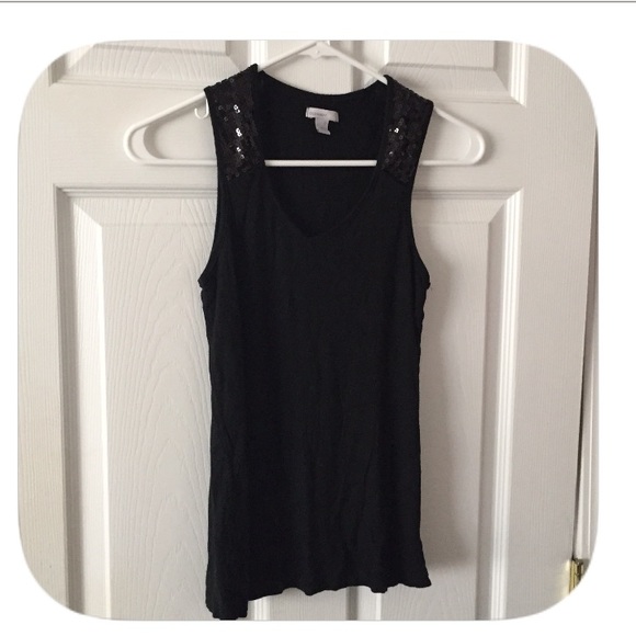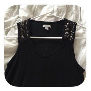BRAND NEW! Never Worn. Black Sequin Tank. All Black Sequins. V Neck.