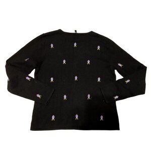 SWEET LITTLE BLACK CARDIGAN SWEATER EMBROIDERED WITH FABERGE EGGS IN BLACK SIZE M BY ETOILE