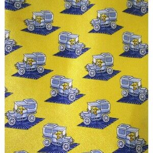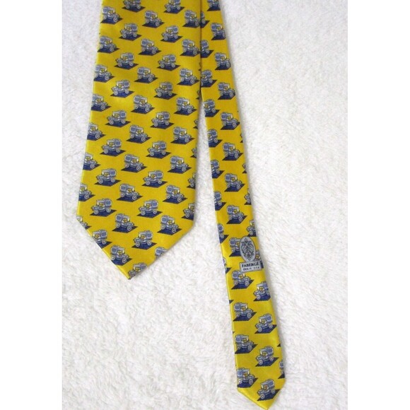 FABERGE Mens Silk Tie Yellow Blue Handmade USA 054 Truck Print