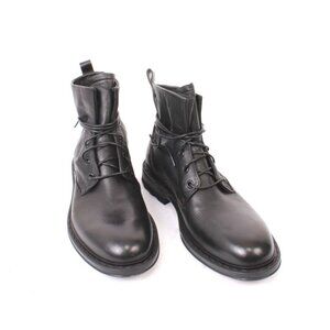FABI 0665 Black Leather Lace-Up Ankle Boots