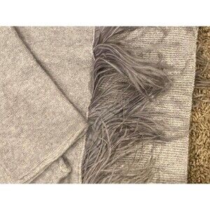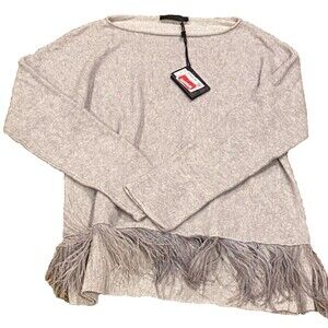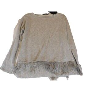 FABIANA FILIPPl Feather Trim Cotton Cashmere Sweater M Dove Grey