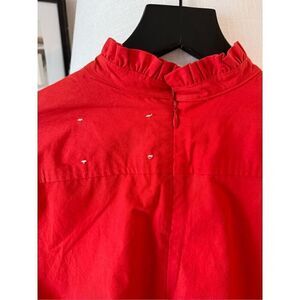 FABIANA PIGNA Crimson Red Blouse Long Sleeve Ruffled Neckline Size Xsmall