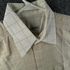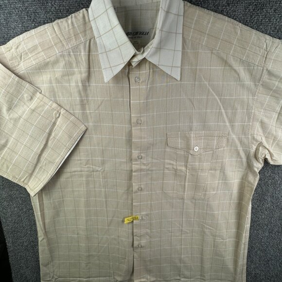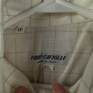 FABIO CAVIGLIA Italy Button Up Shirt Short Sleeve Cotton Size 4 Beige Check