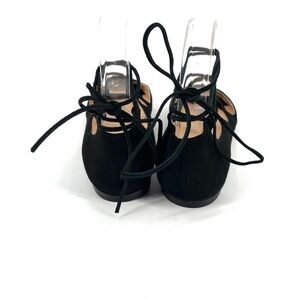 FABIO RUSCONI NWT Suede Black Open Toe Lace Up Ballet Flats