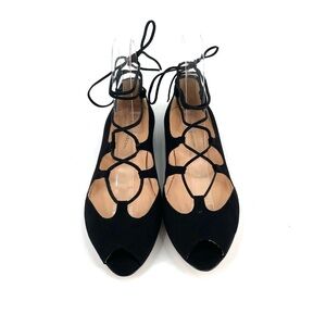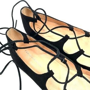 FABIO RUSCONI NWT Suede Black Open Toe Lace Up Ballet Flats
