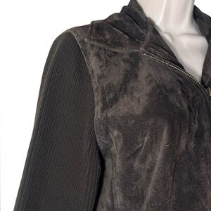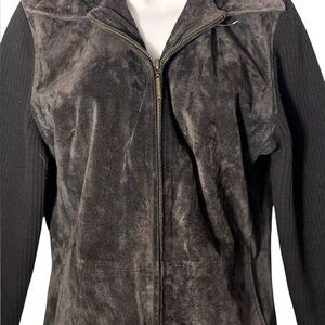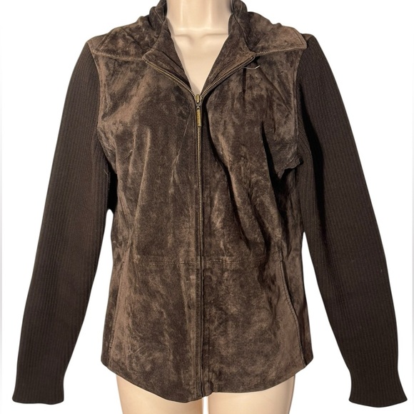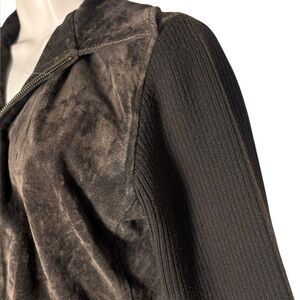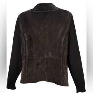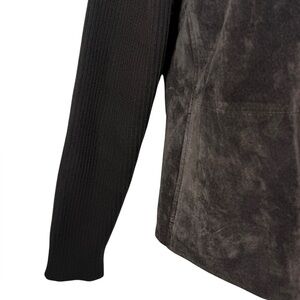 vintage Y2K FABIO jacket blends soft brown suede genuine leather with ribbed sweater sleeves